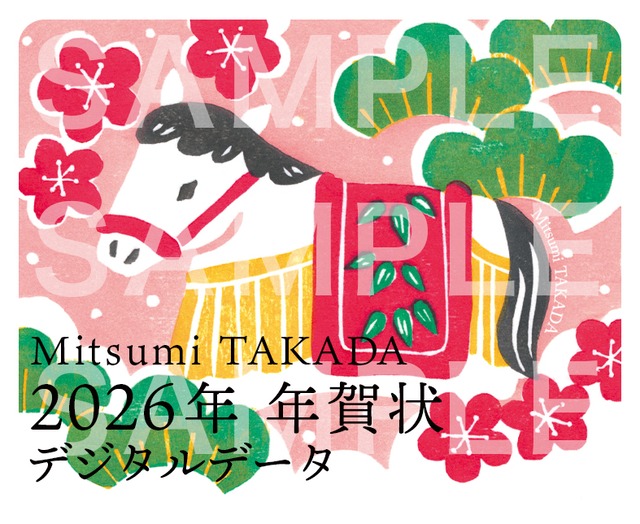 2026年うま年の年賀状用イラストデータです。 白馬と松竹梅を組み合わせた おめでたい木版画の絵柄です。 3種類のデータが入っています。 ・イラストのみ(mt_2026nenga_1.png、787 × 628ピクセル) ・「謹賀新年」付き(mt_2026nenga_2.png、787 × 1165ピクセル) ・「HAPPY NEW YEAR」付き(mt_2026nenga_3.png、787 ×716ピクセル) ファイル形式:PNG 解像度:200dpi カラー:RGB ZIPファイルの中に3種類のデータが入っています。 家庭用プリンターでの印刷を想定したデータです。 ハガキ(タテ)に合わせたサイズですが、作業環境によってはサイズ調整を行ってください。 ※著作権は放棄しておりません。 ※商用利用不可。商標登録不可。購入者ご本人のみの個人使用に限ります。 ※他の画像や文字などと組み合わせて使用していただいて構いませんが、画像自体の改変はしないでください。 ※画像の複製、配布、転売、譲渡、商品化などは禁止です。 ※お使いの環境によって画像の色味などが変わる場合があります。ご了承ください。 こちらはデータのみの販売です。 印刷済みのハガキは別商品(現在ご予約受付中、12月上旬一般販売開始予定)となります。 ※こちらの商品のお支払い方法は「クレジットカード」もしくは「あと払い(Pay ID)」のみとなります。
